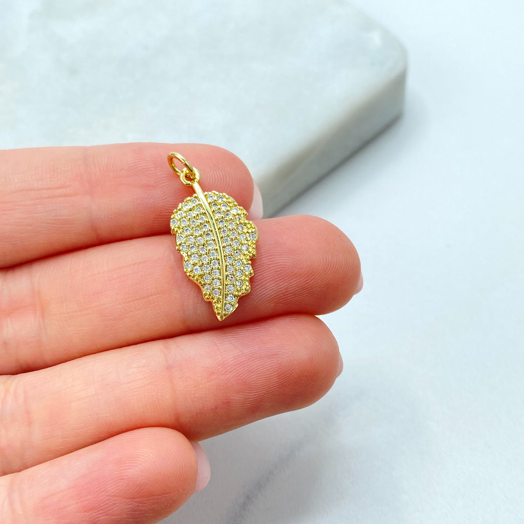 18k Gold Filled Leaf Charm, CZ Pave Small Leaf Pendant, Dainty Nature Jewelry, Bulk Order, Boho Charm, Gift for Her