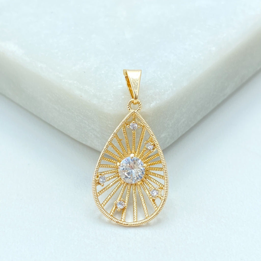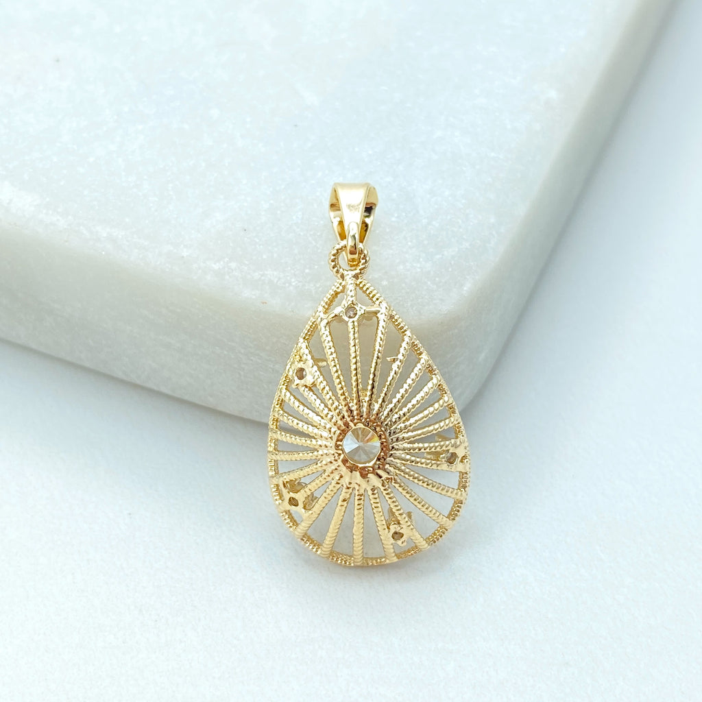 18k Gold Filled Teardrop Pendant, CZ Filigree Drop Charm, Elegant Dangle Jewelry, Sparkling Teardrop Pendant