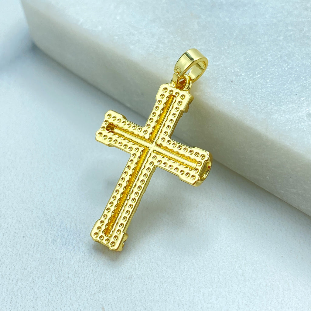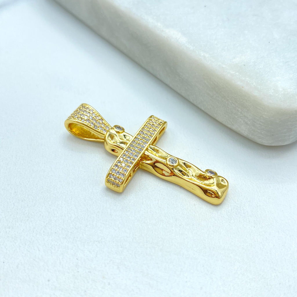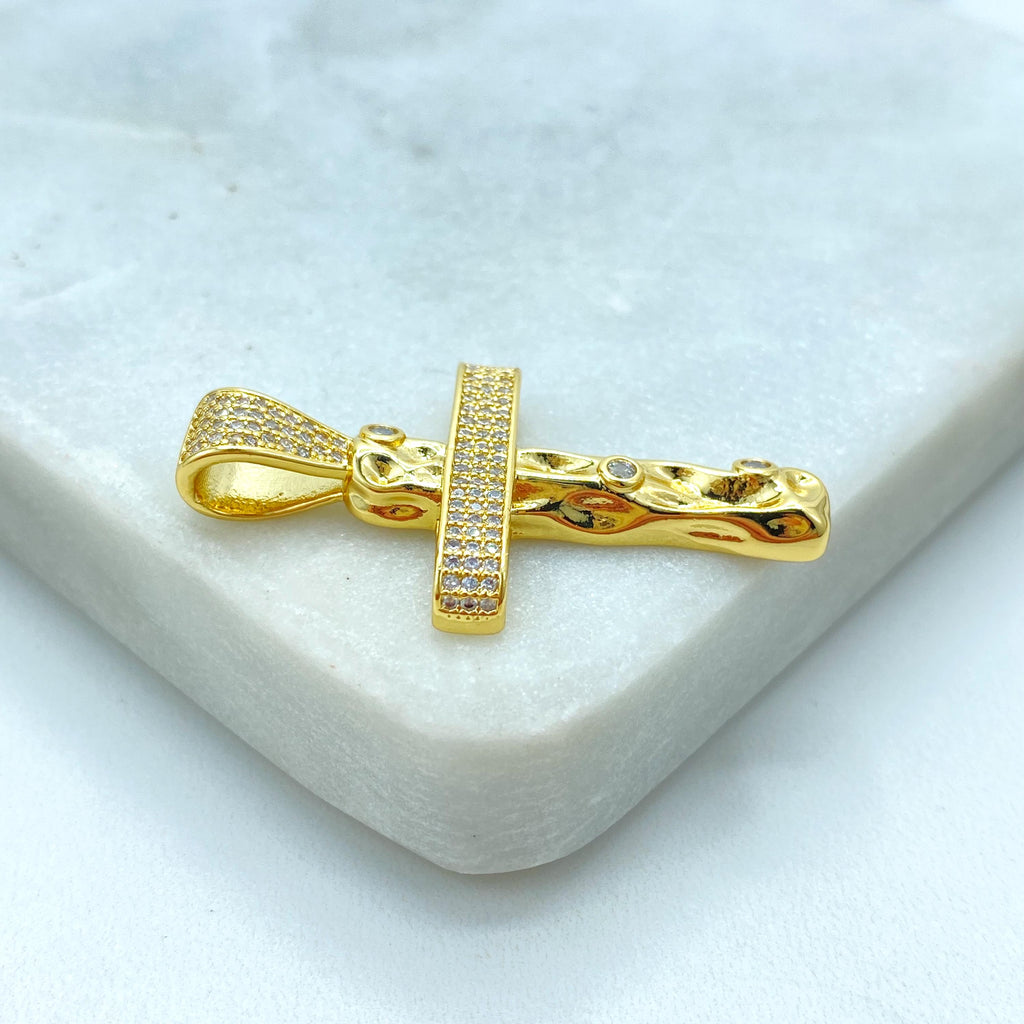 18k Gold Filled Textured Cross Pendant, CZ Accent Religious Charm, Statement Faith Jewelry, CZ Cross Pendant