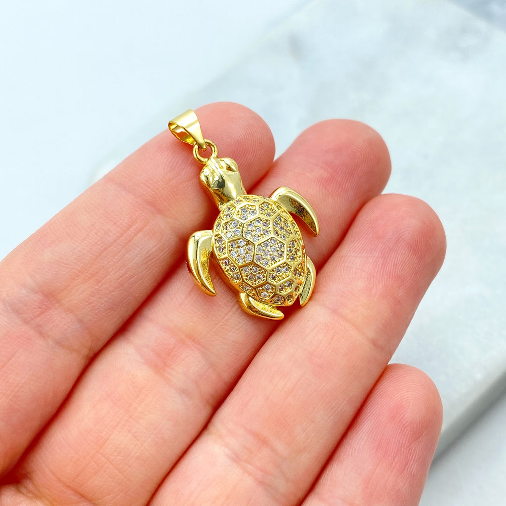 18k Gold Filled Turtle Pendant, CZ Pave Sea Turtle Charm, Dainty Ocean Jewelry, Gift for Her, CZ Sea Turtle Charm