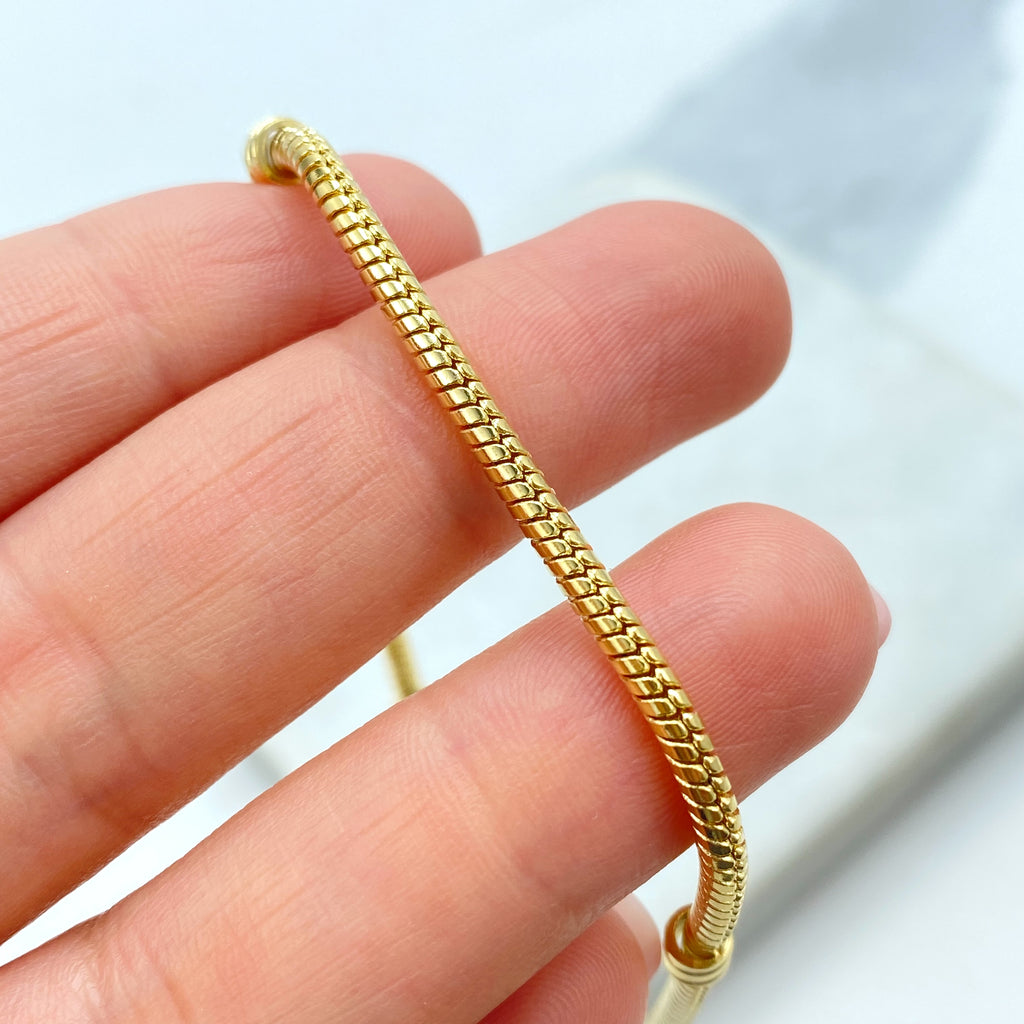 18k Gold Filled Snake Chain Bracelet, European Style Charm Bracelet, Cable Bangle for Charms, Barrel Clasp, Charm Holder Bracelet