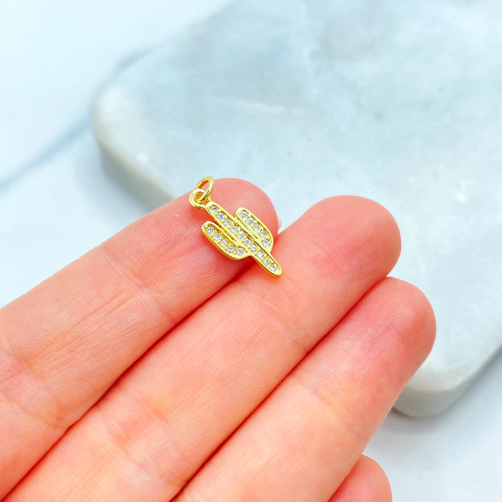 18k Gold Filled Cactus Charm, Small Cactus CZ Pendant, Dainty Minimalist Charm, Gift for Her, Bulk Order