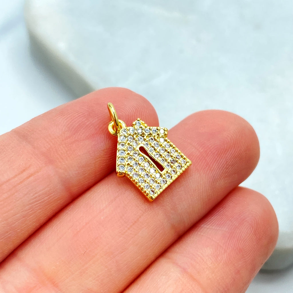 18k Gold Filled House Charm, CZ Pave Petite Pendant with Keyhole Design, Dainty Symbolic Jewelry, CZ House Charm