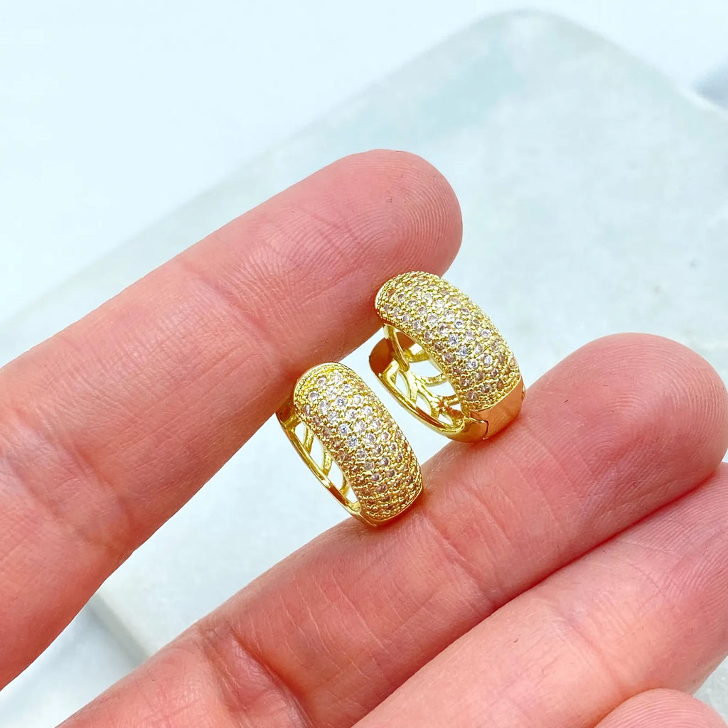 18k Gold Filled Micro CZ Pave Huggie Earrings, Sparkling Hoop Design, Wholesale Jewelry