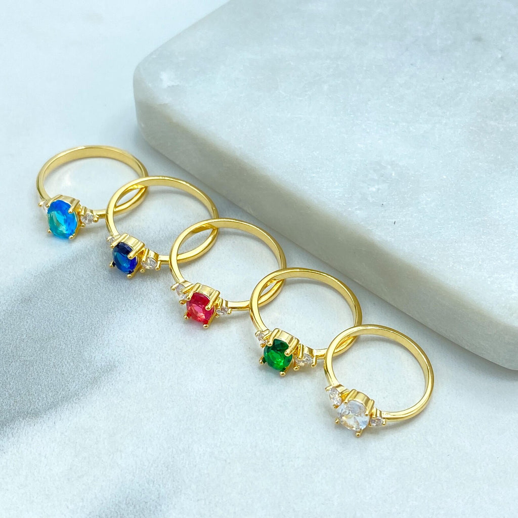 18k Gold Filled Colorful Oval Stone Rings, Elegant Multicolor CZ Rings, Wholesale Jewelry
