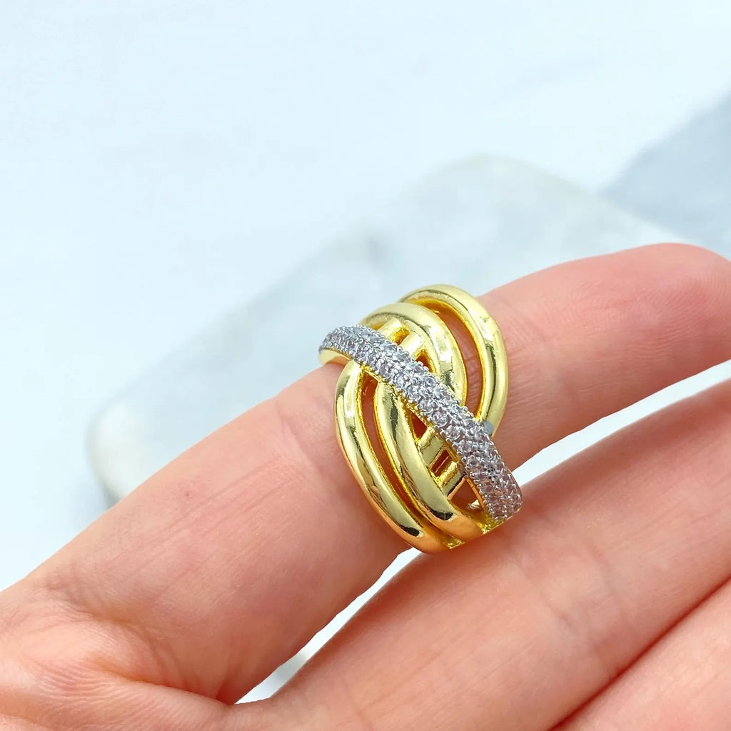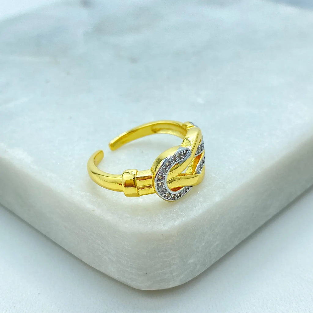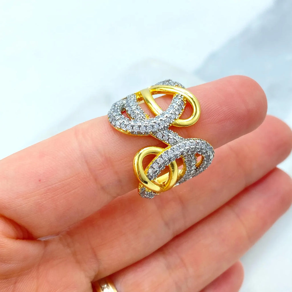 Gold Plated Adjustable Infinity CZ Ring, Statement Knot Ring, Open Band Design, Wholesale Jewelry