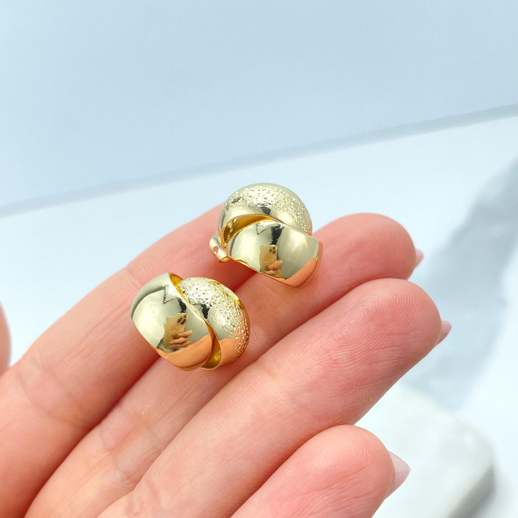 18k Gold Filled Textured Dome Stud Earrings, Chunky Layered Design, Wholesale Jewelry