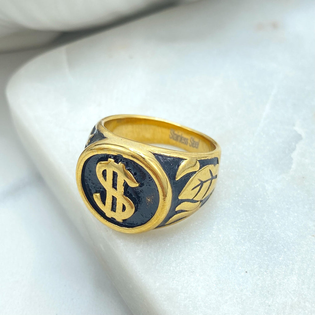 Stainless Steel Dollar Sign Ring, Gold Tone Money Symbol Ring, Vintage Style Statement Jewelry, Wholesale Jewelry