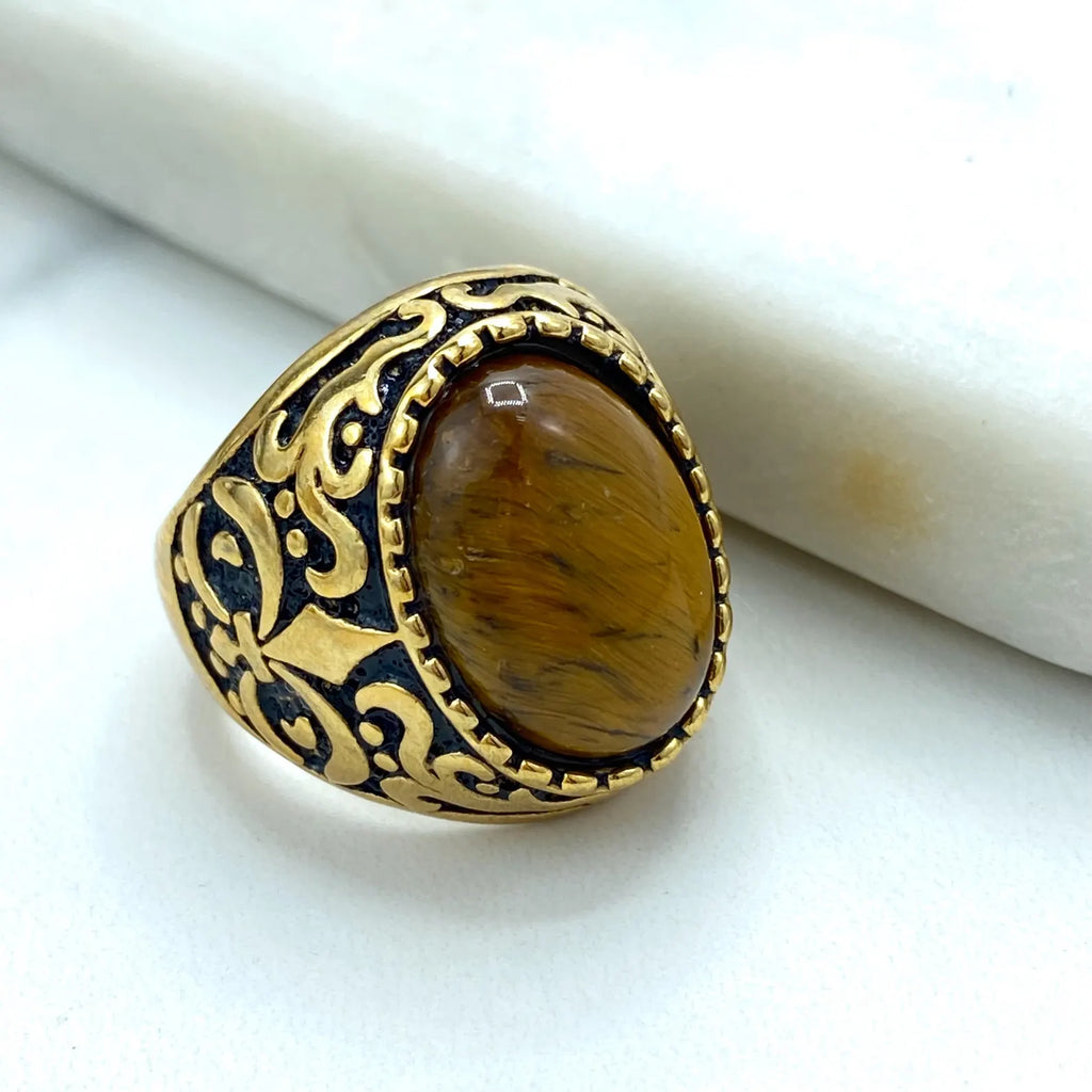 Stainless Steel Vintage Men's Ring with Brown Stone, Bold Statement Jewelry, Wholesale Jewelry