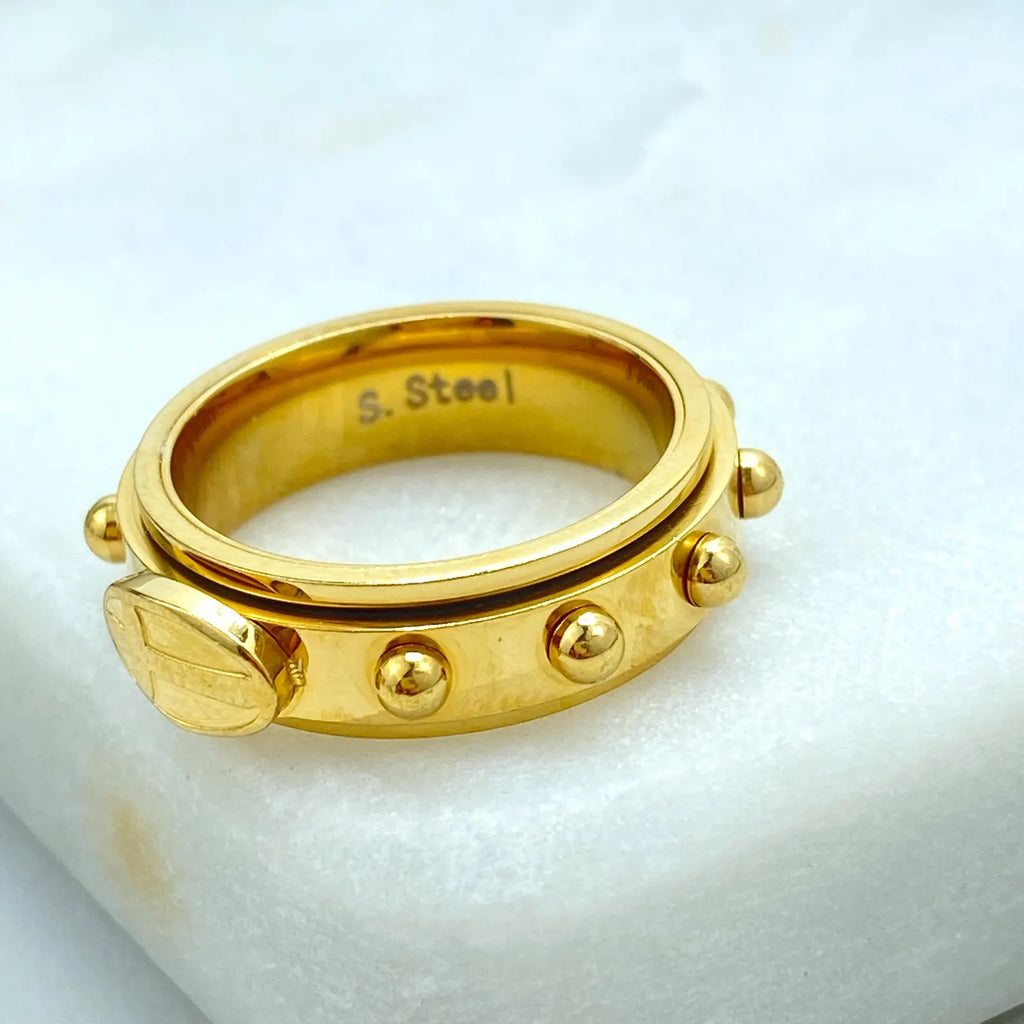 Stainless Steel Spinner Ring, Gold Tone Fidget Ring, Modern Stud Design, Stress Relief Jewelry, Wholesale Jewelry