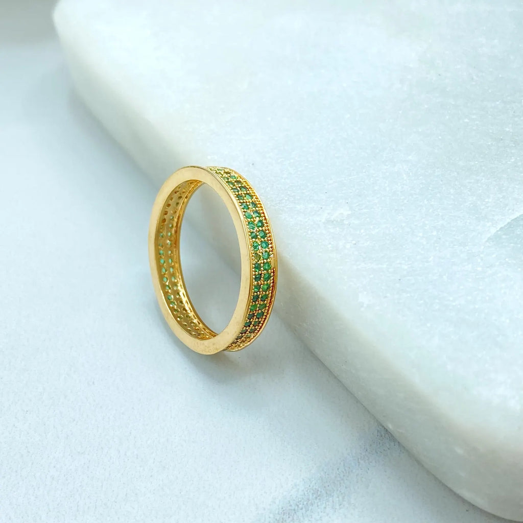 18k Gold Filled Colored CZ Band Rings, Stackable Rings in Blue, Green & Champagne, Wholesale Jewelry