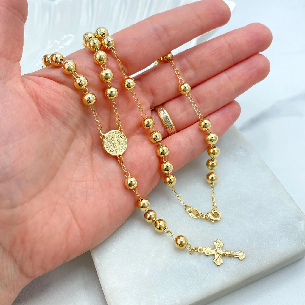 18k Gold Filled Rosary Necklace, San Benito Beaded Rosary, Catholic Rosary, Cross Pendant, Religious Jewelry Wholesale