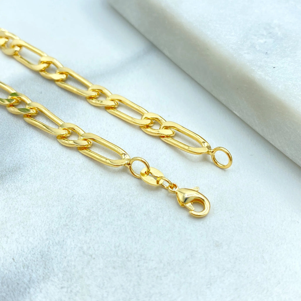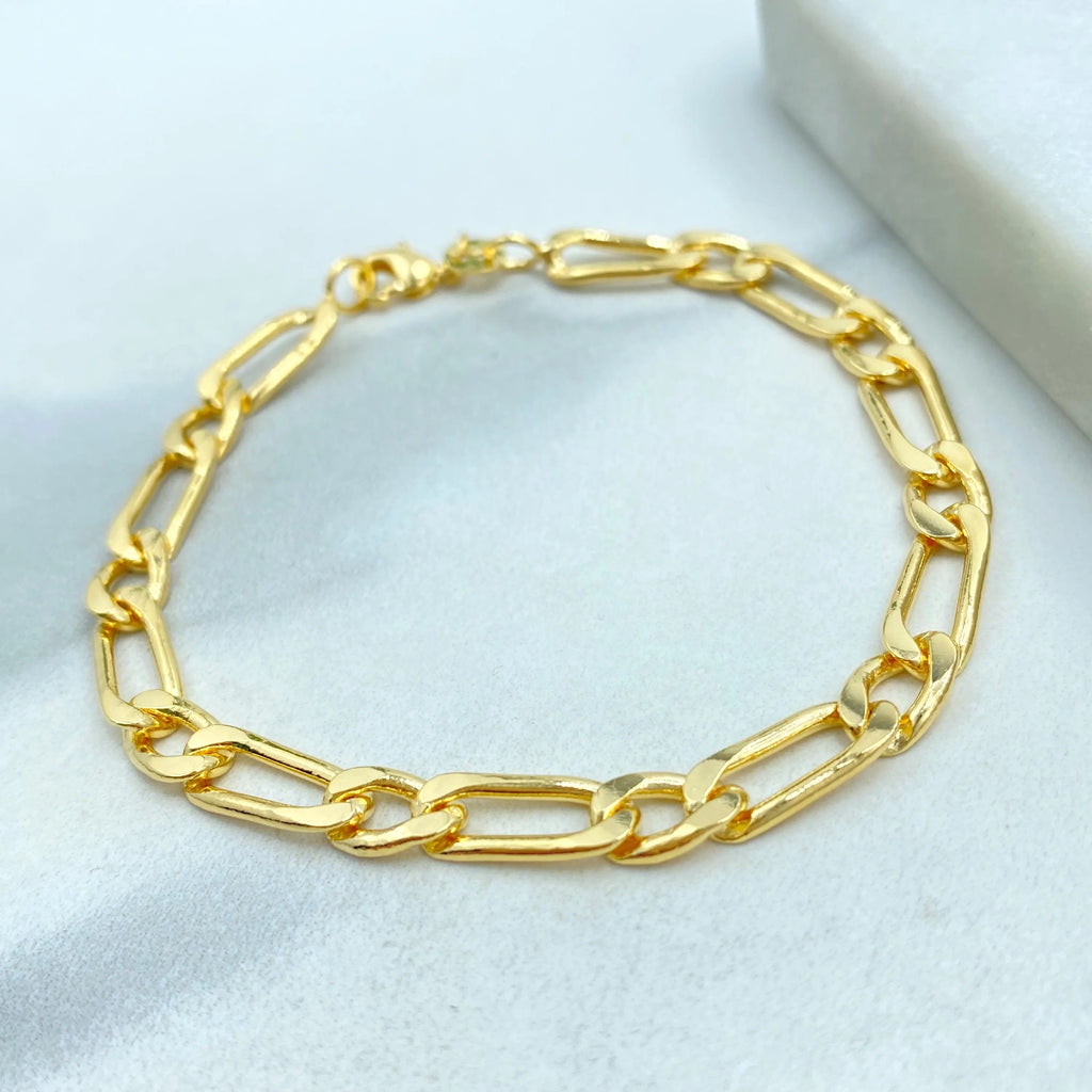 18k Gold Filled Figaro Chain Bracelet, 7.5 Inches | 5.5mm, Classic Link Bracelet, Unisex Gold Chain