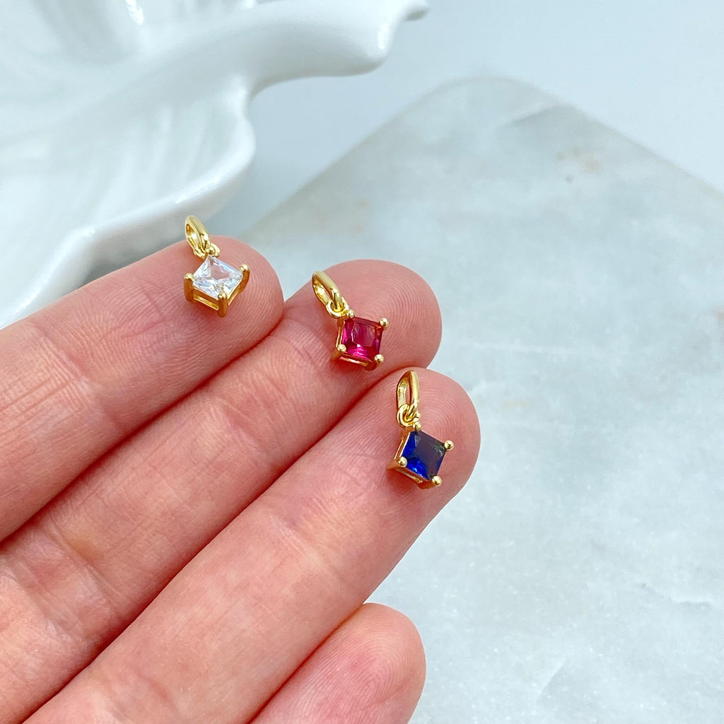 18k Gold Filled Charm, Petite Square CZ Charm in Ruby, Sapphire & Diamond Simulated Stones, CZ Charm, Dainty Jewelry