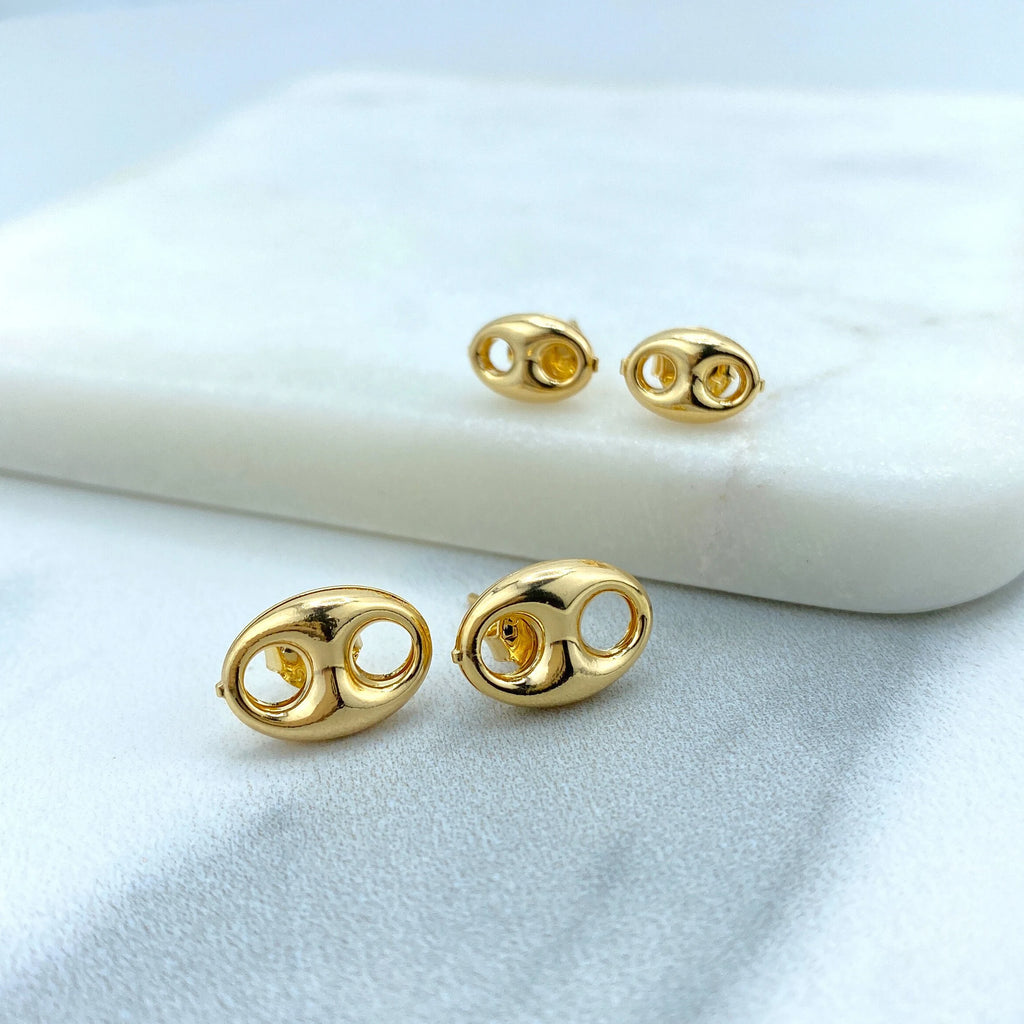 18k Gold Filled 3mm or 4mm Mariner Anchor, Chunky Link Mariner, Stud Earrings,