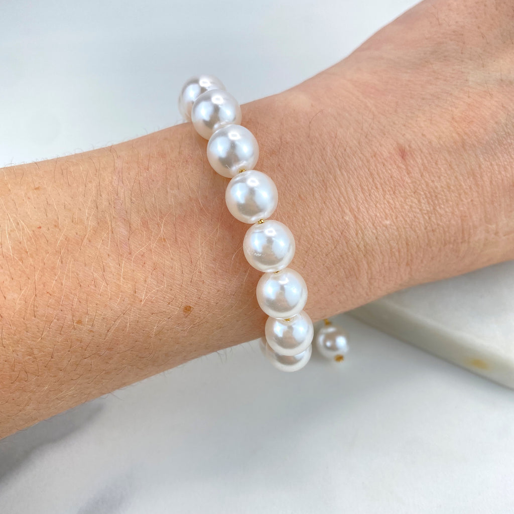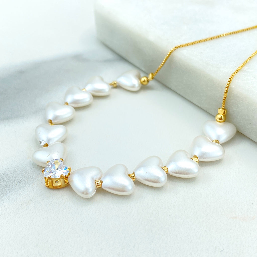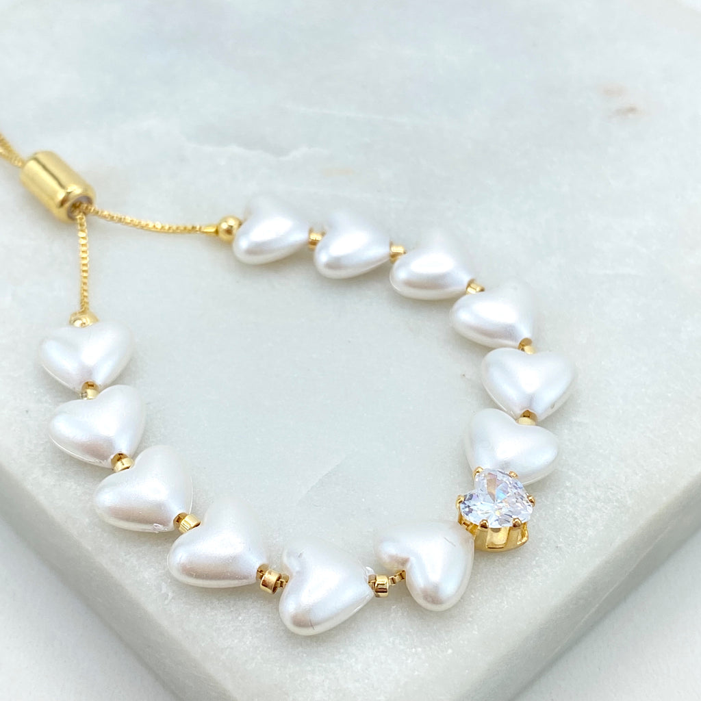 18k Gold Filled Bracelet, Simulated Pearls with Lucky Charms, Protection and Heart Charms, Lucky & Protection Bracelet