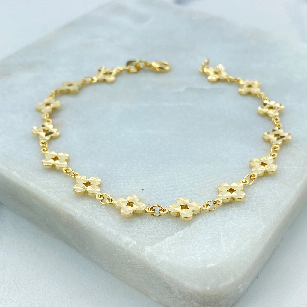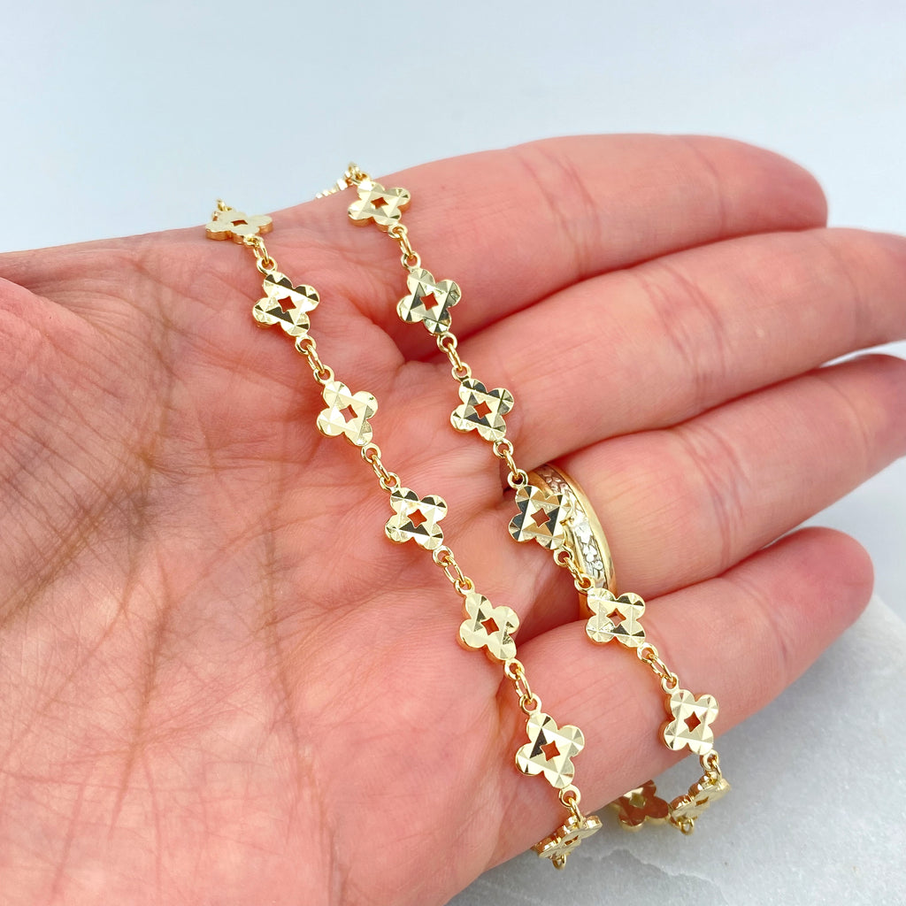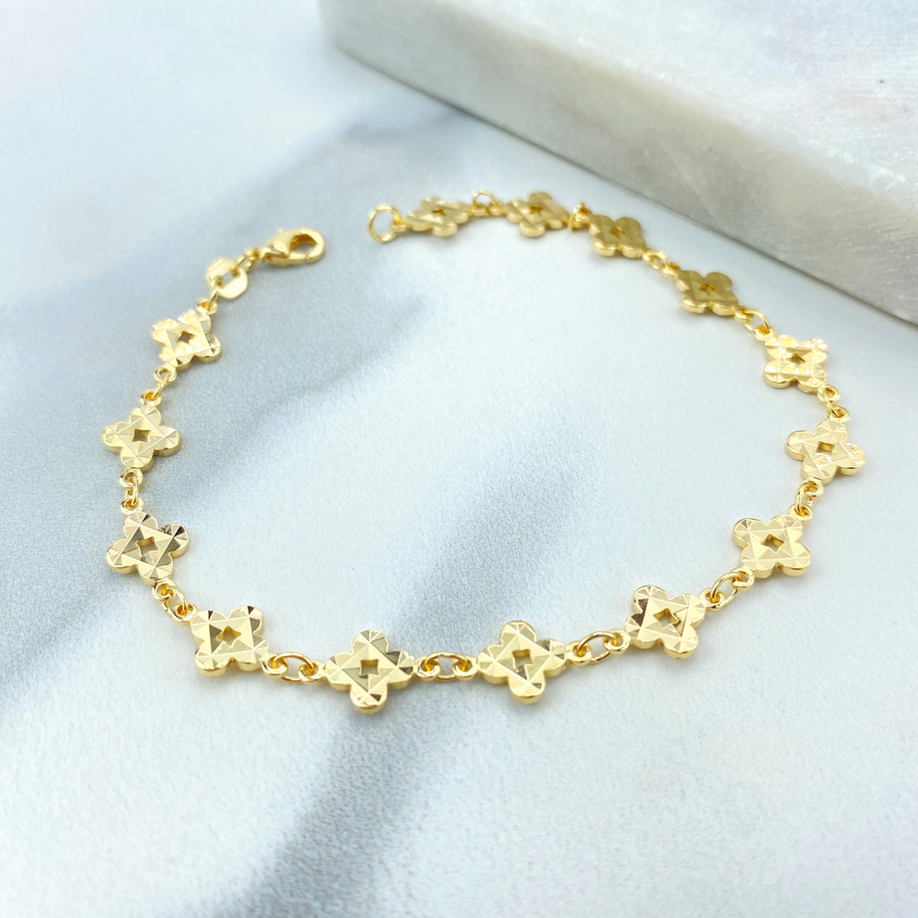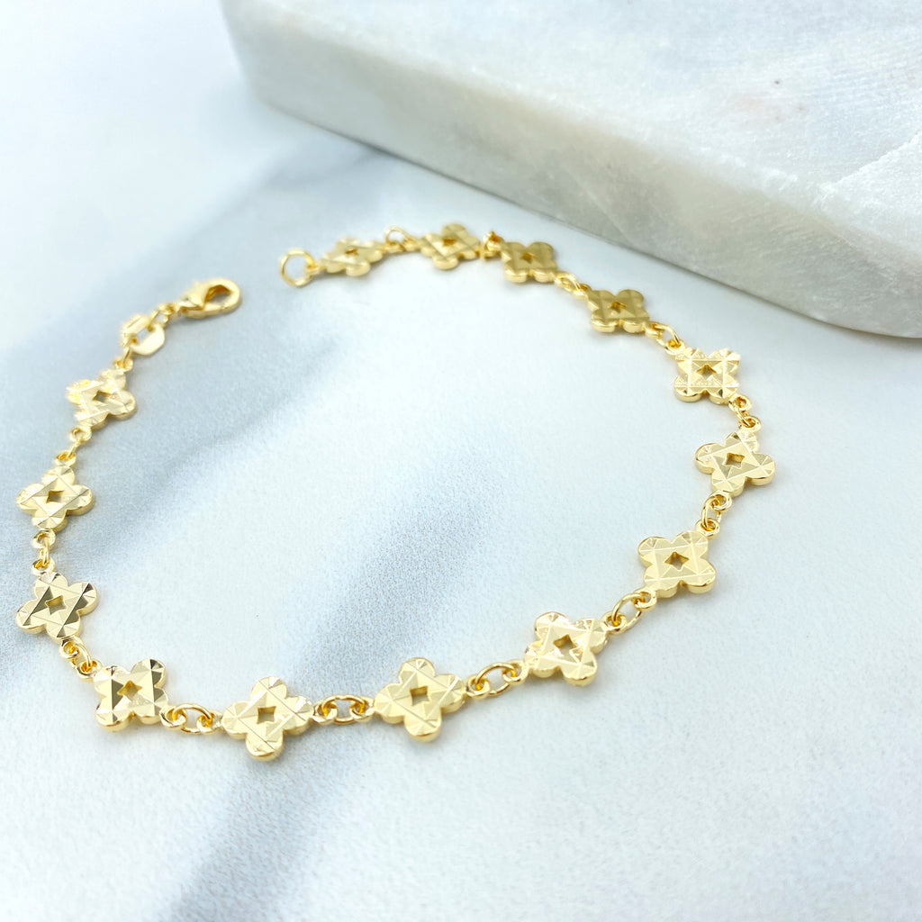 18k Gold Filled “Dios Te Bendiga” Safety Pin Brooch, Cross & Beads Charm Pin