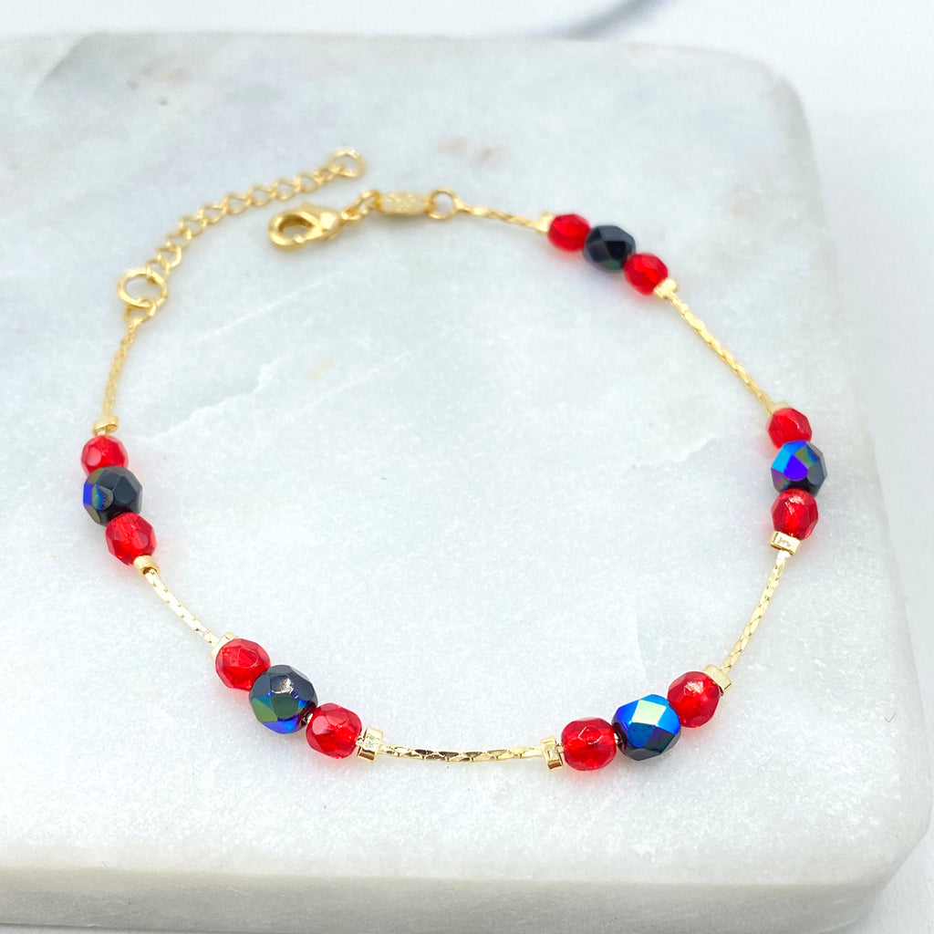 18k Gold Filled Linked Multi-Color Evil Eye Bracelet, Colorful Protection Jewelry, Rainbow Nazar Bracelet