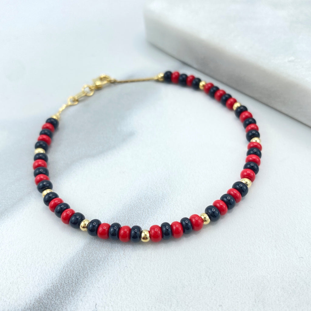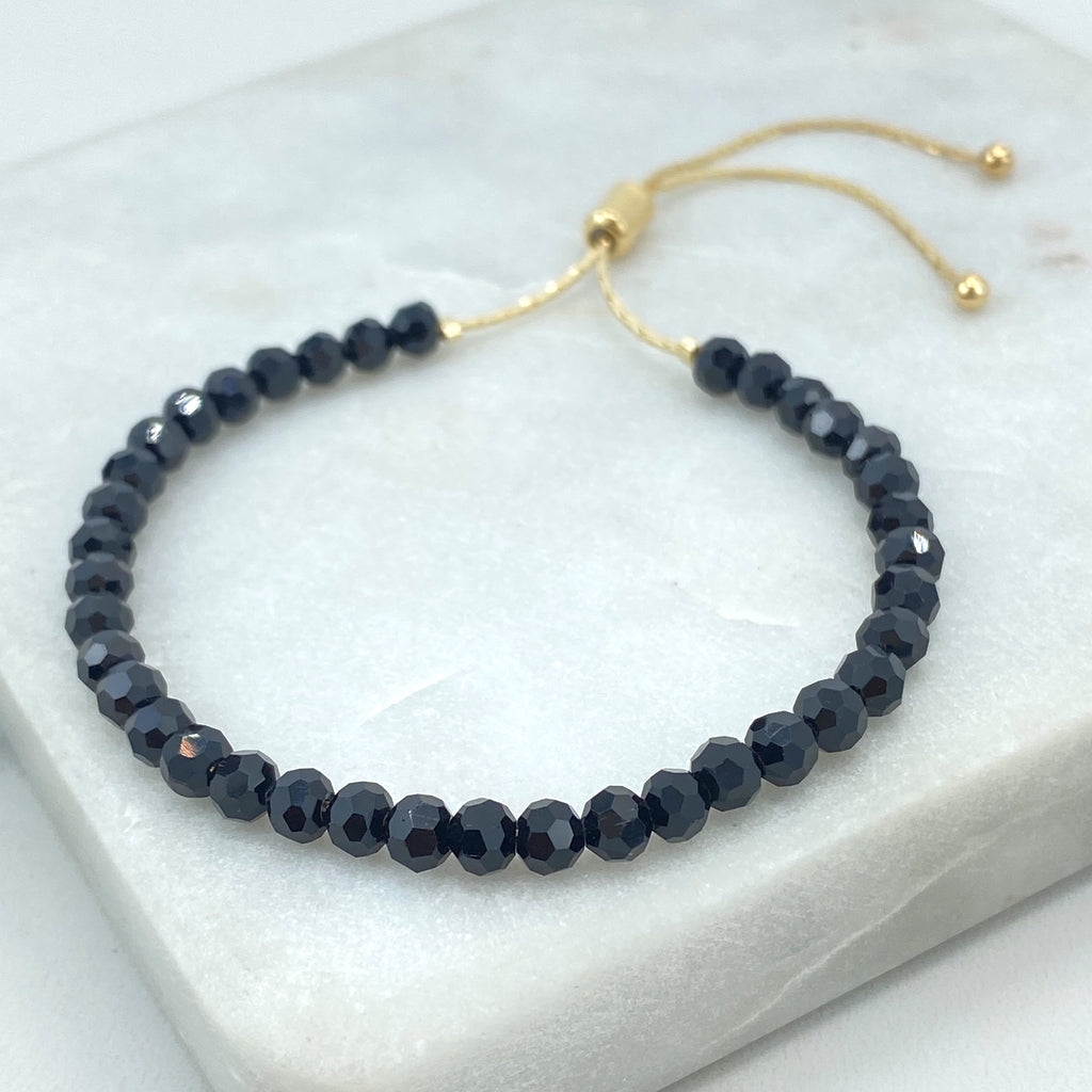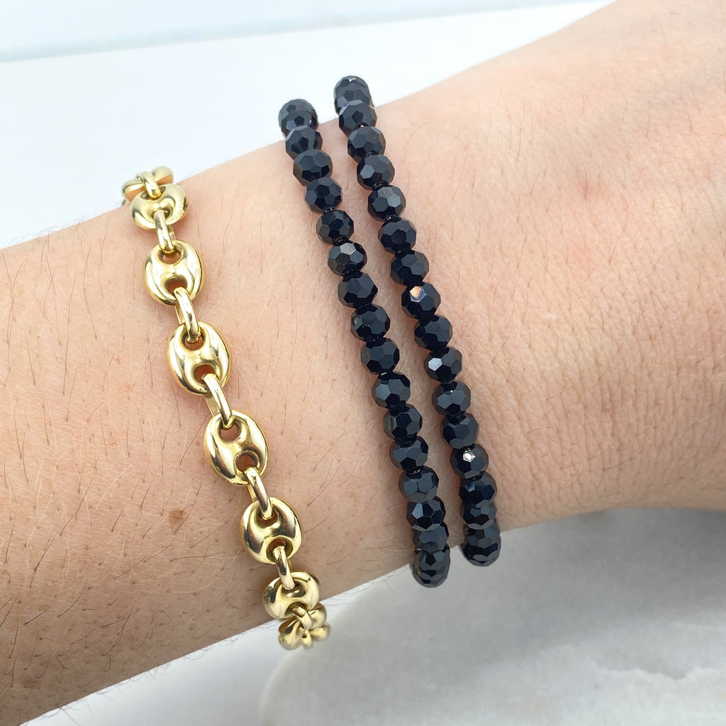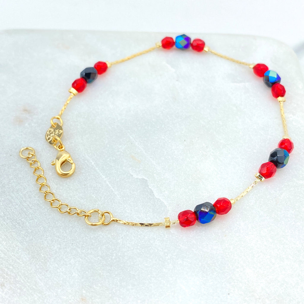 18k Gold Filled Evil Eye Beaded Bracelets, Stretch Protection Bracelets, Two Styles – Small & Medium Beads, Blue Eye Jewelry