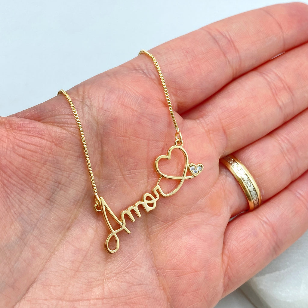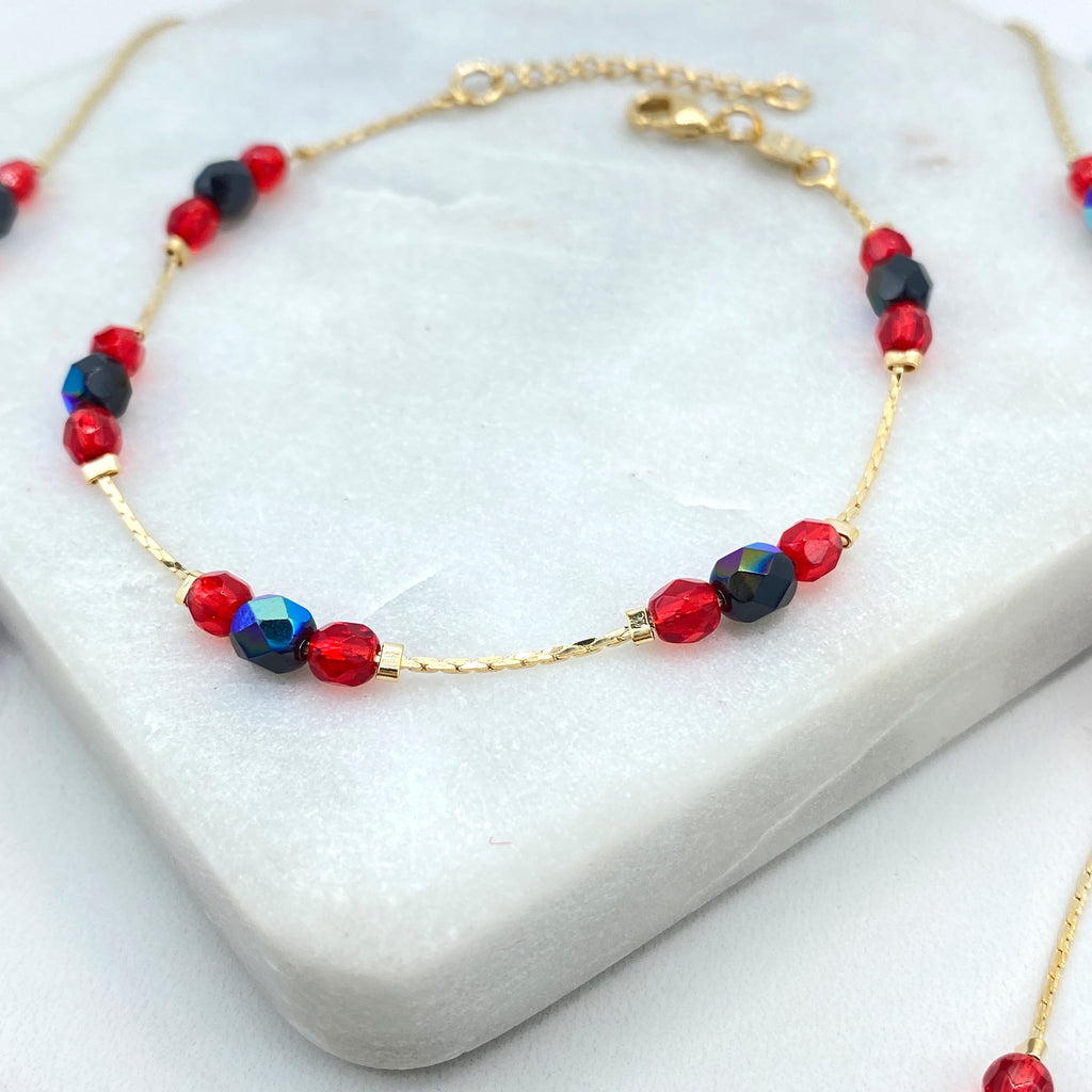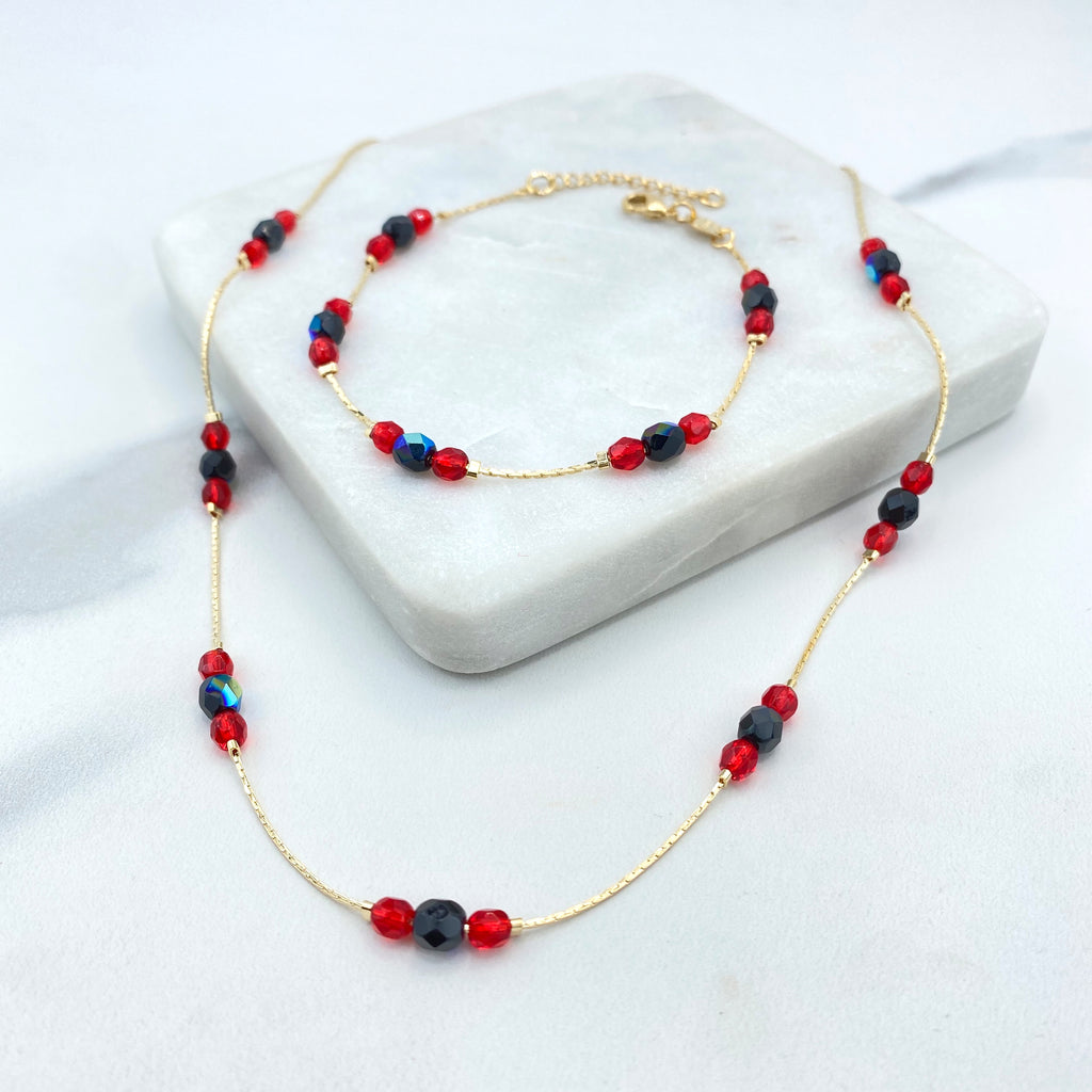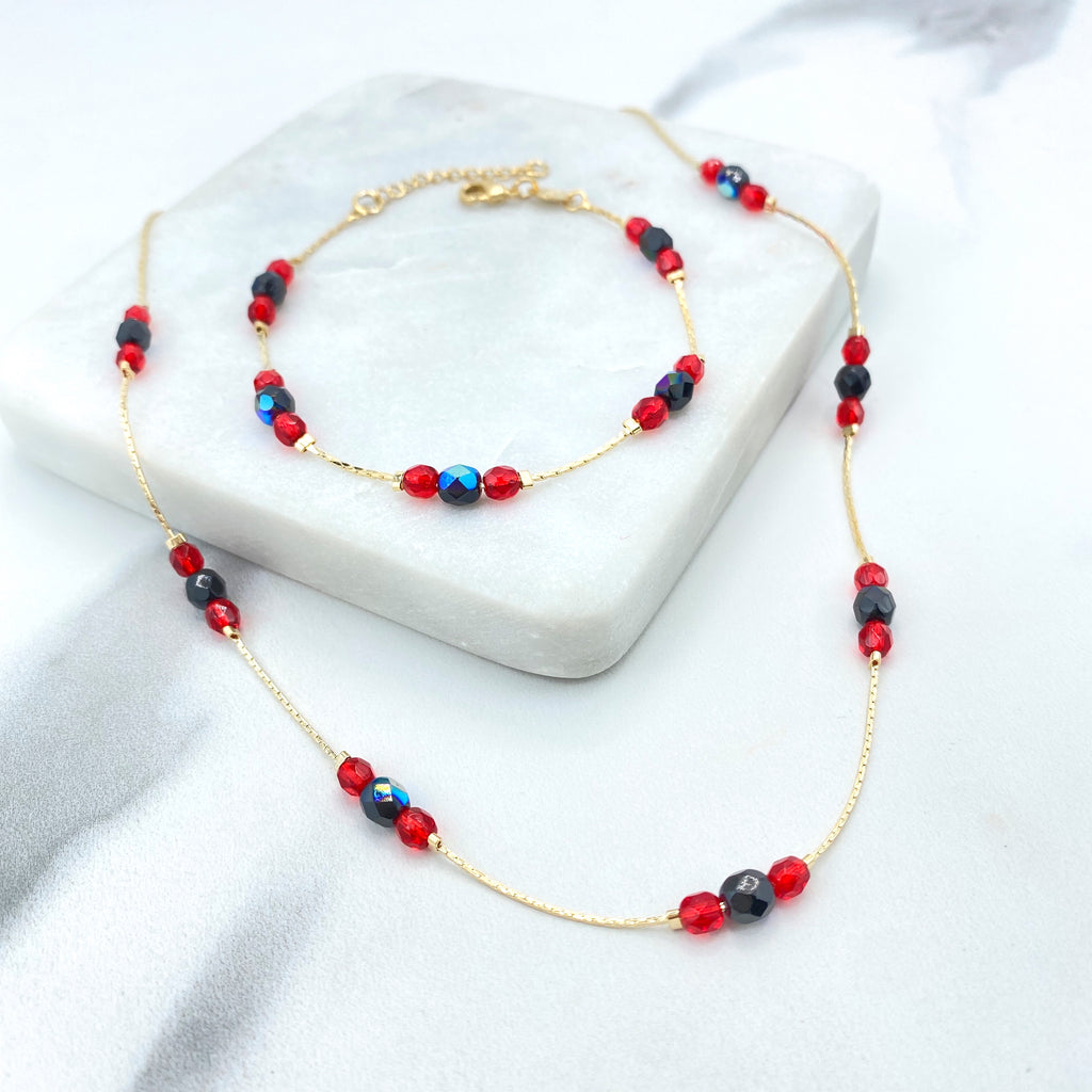 18k Gold Filled Filigree Heart Jewelry Set, Colorful Heart Necklace, Bracelet & Earrings, Romantic Wholesale Jewelry