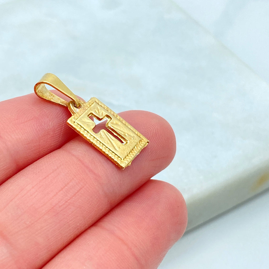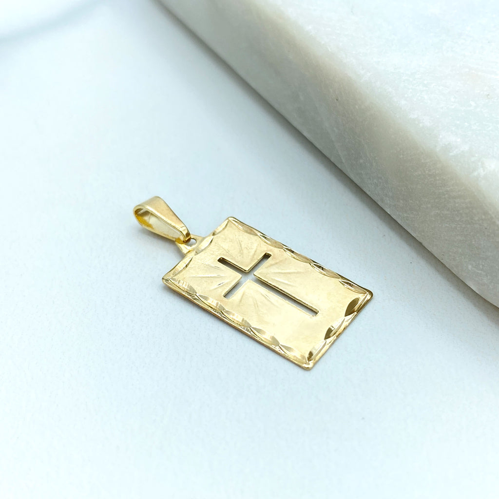 18k Gold Filled Textured Cross Pendant, CZ Accent Religious Charm, Statement Faith Jewelry, CZ Cross Pendant