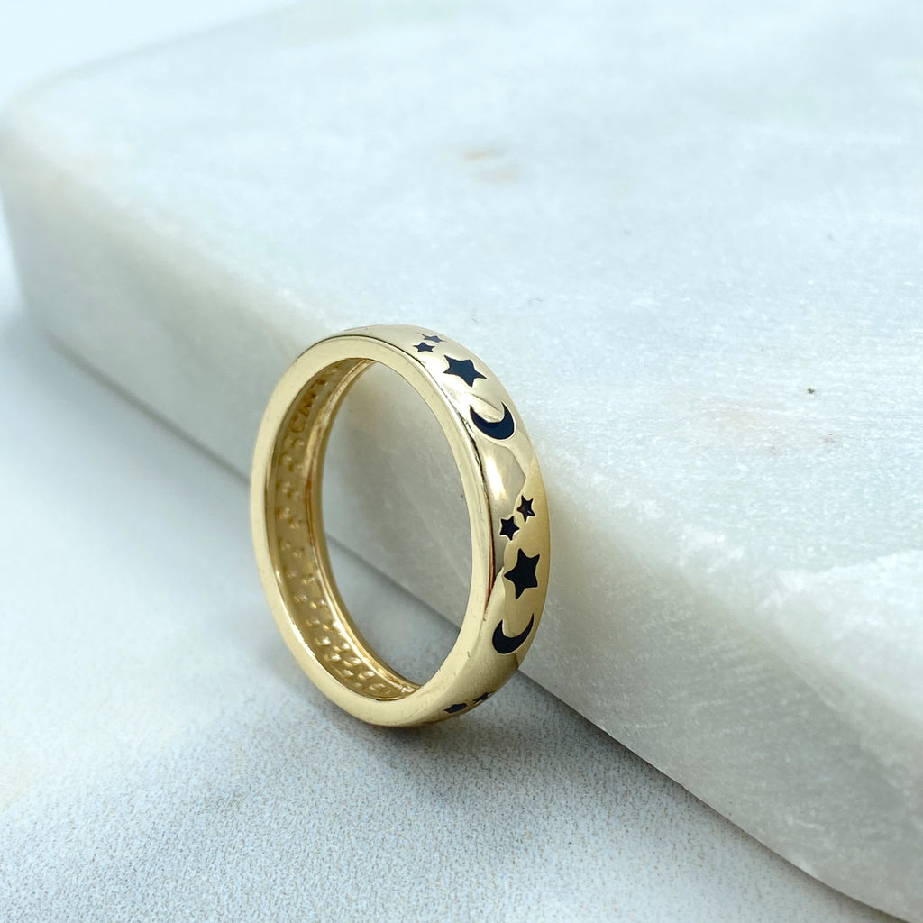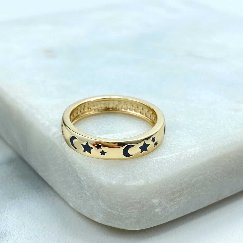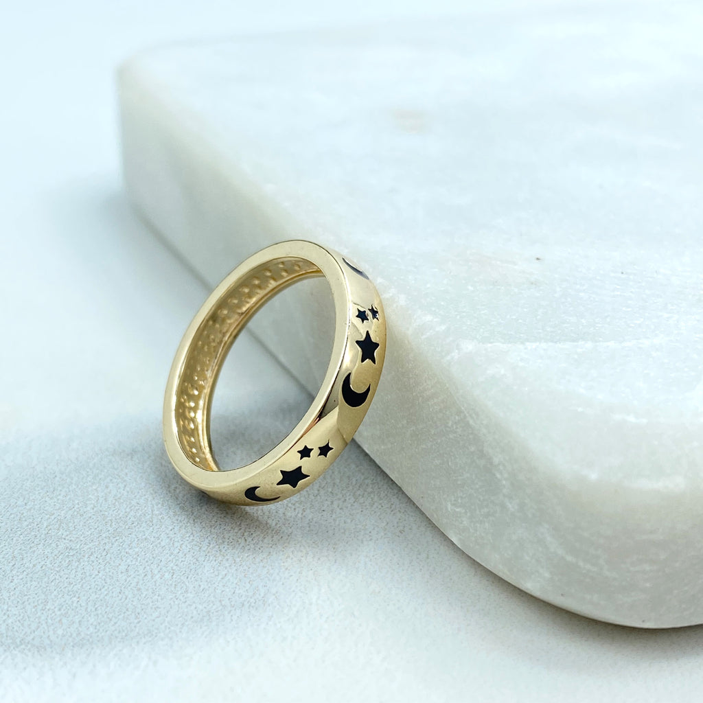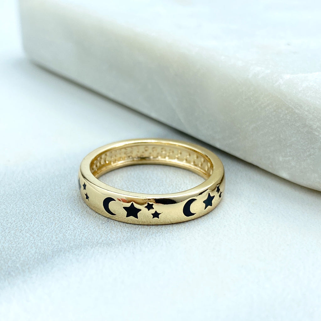 Gold Plated Adjustable Crescent Ring, CZ Pavé Moon Design, Textured Open Band, Wholesale Jewelry