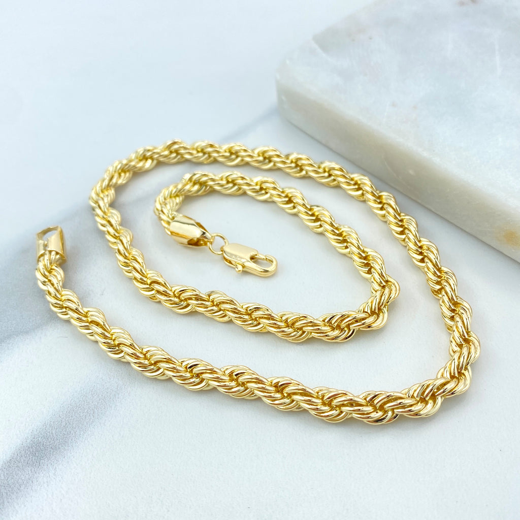 18k Gold Filled Chain Necklace and Bracelet Set, Spring Rings Closure, Elegant Statement Jewelry, Wholesale Jewelry
