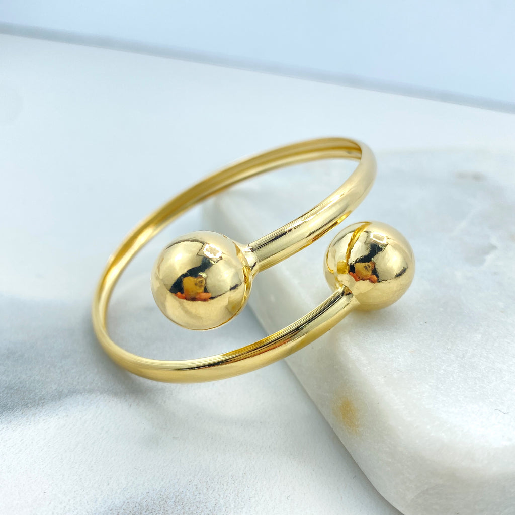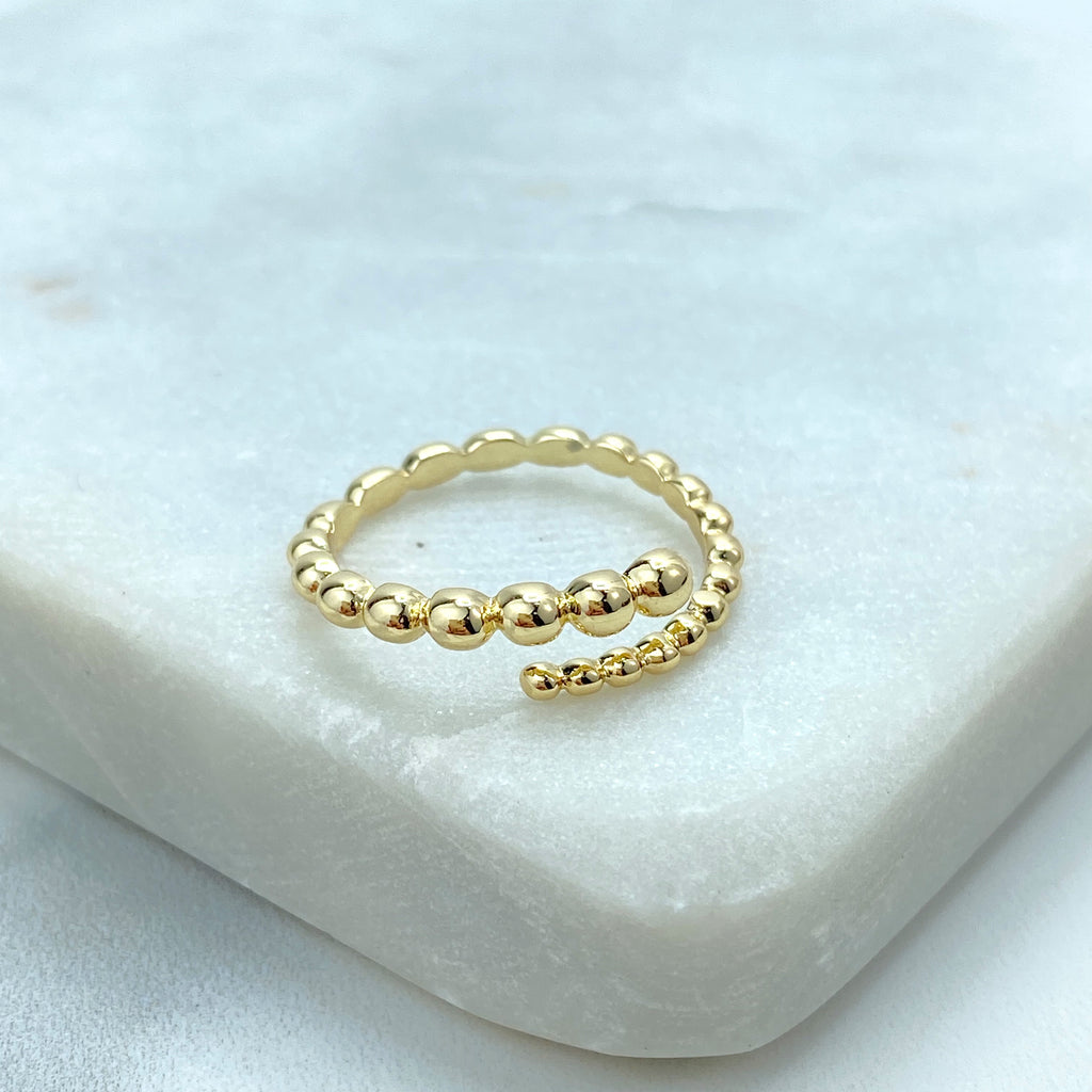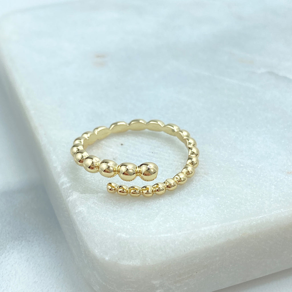 Gold Plated Adjustable Sphere Ring, CZ Pavé Side Detailing, Modern Open Band, Wholesale Jewelry