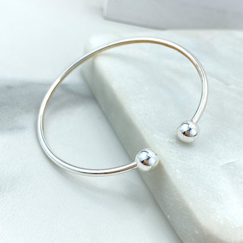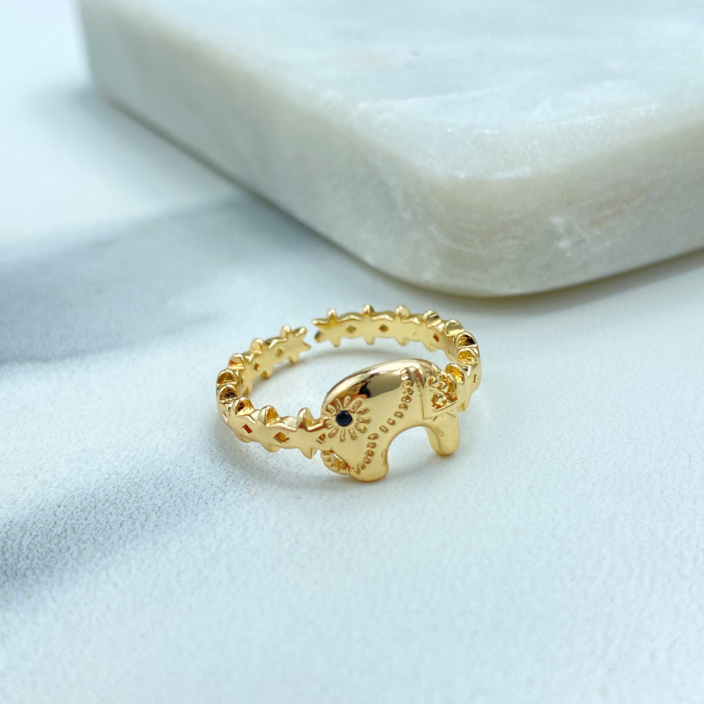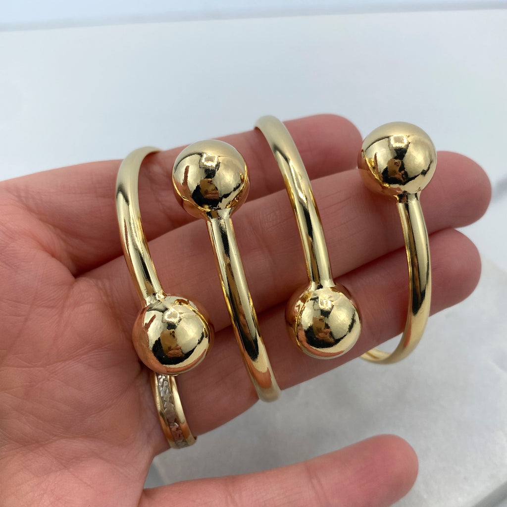 Gold Plated Adjustable Sphere Ring, CZ Pavé Side Detailing, Modern Open Band, Wholesale Jewelry