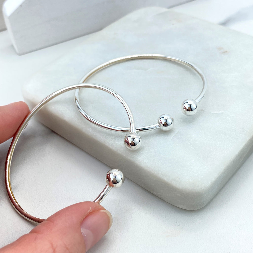 Silver Filled Adjustable Beaded Bracelet, Puff Heart Charm Bracelet, Polished Ball Beads, Friendship Bracelet