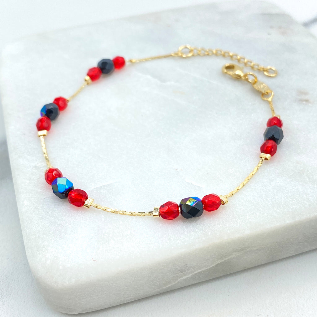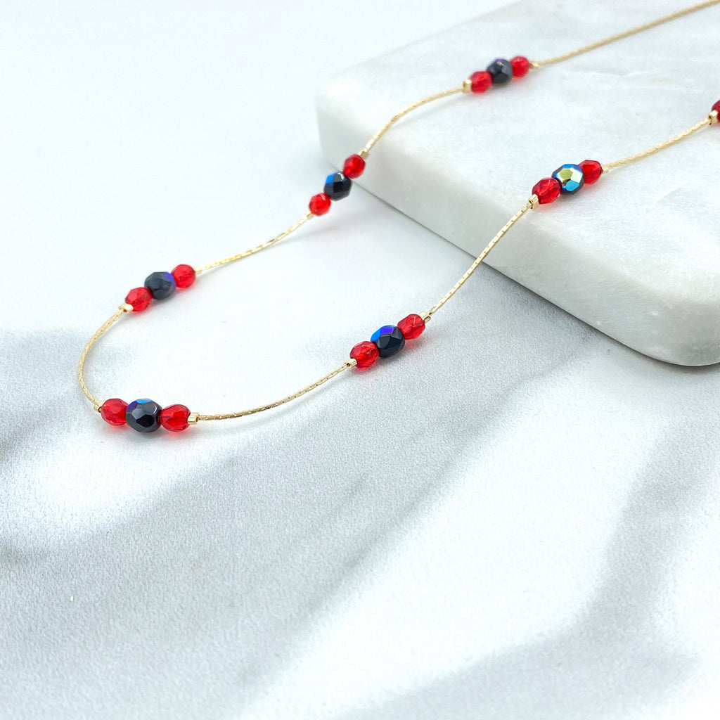 18k Gold Filled Rosary Necklace, Guadalupe Box Chain Rosary with Multicolor Beads, Catholic Jewelry, Religious