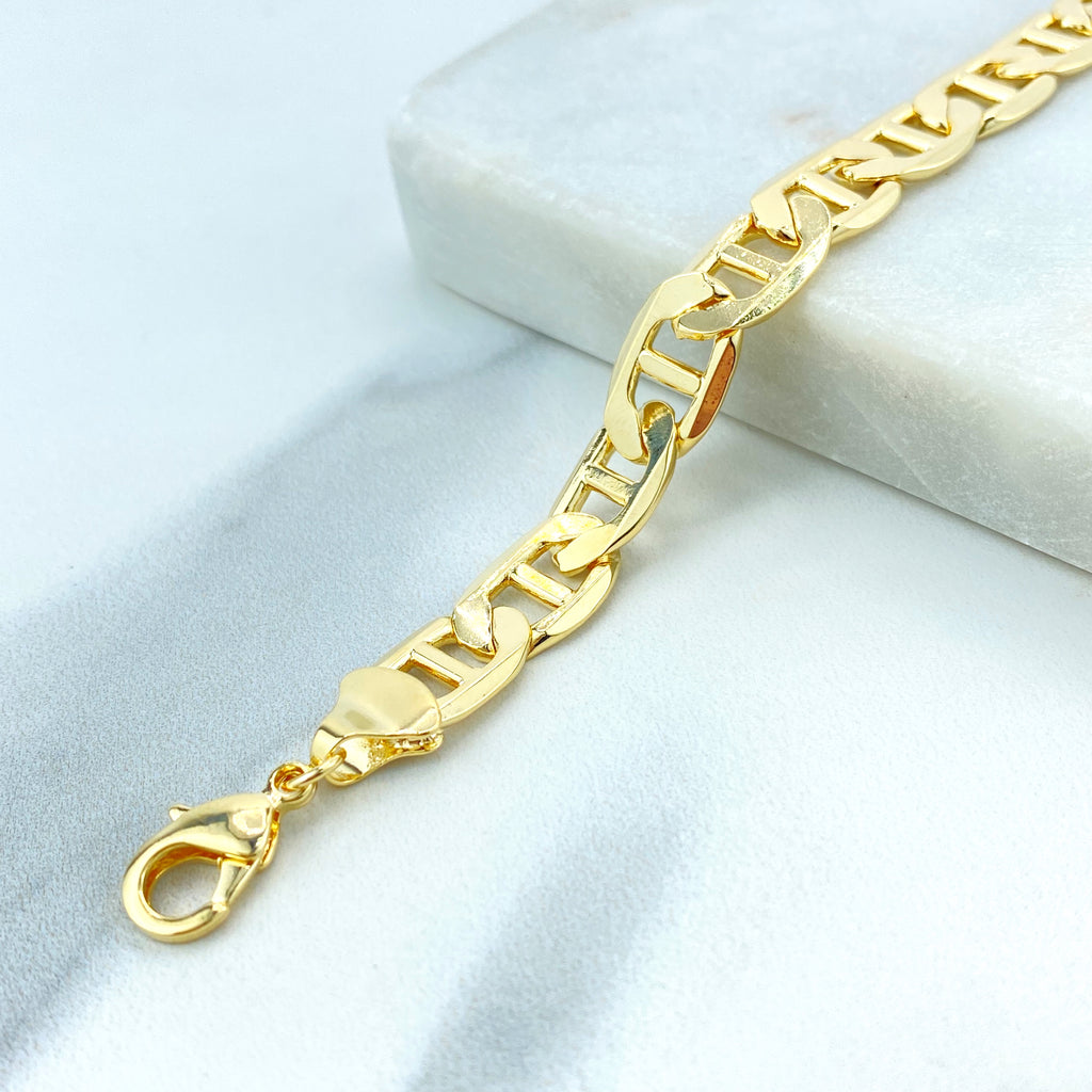 18k Gold Filled 9mm Polished Mariner Link Chain Bracelet, Chunky Mariner Link Chain Bracelet, Unisex Bracelet, Wholesale Jewelry.