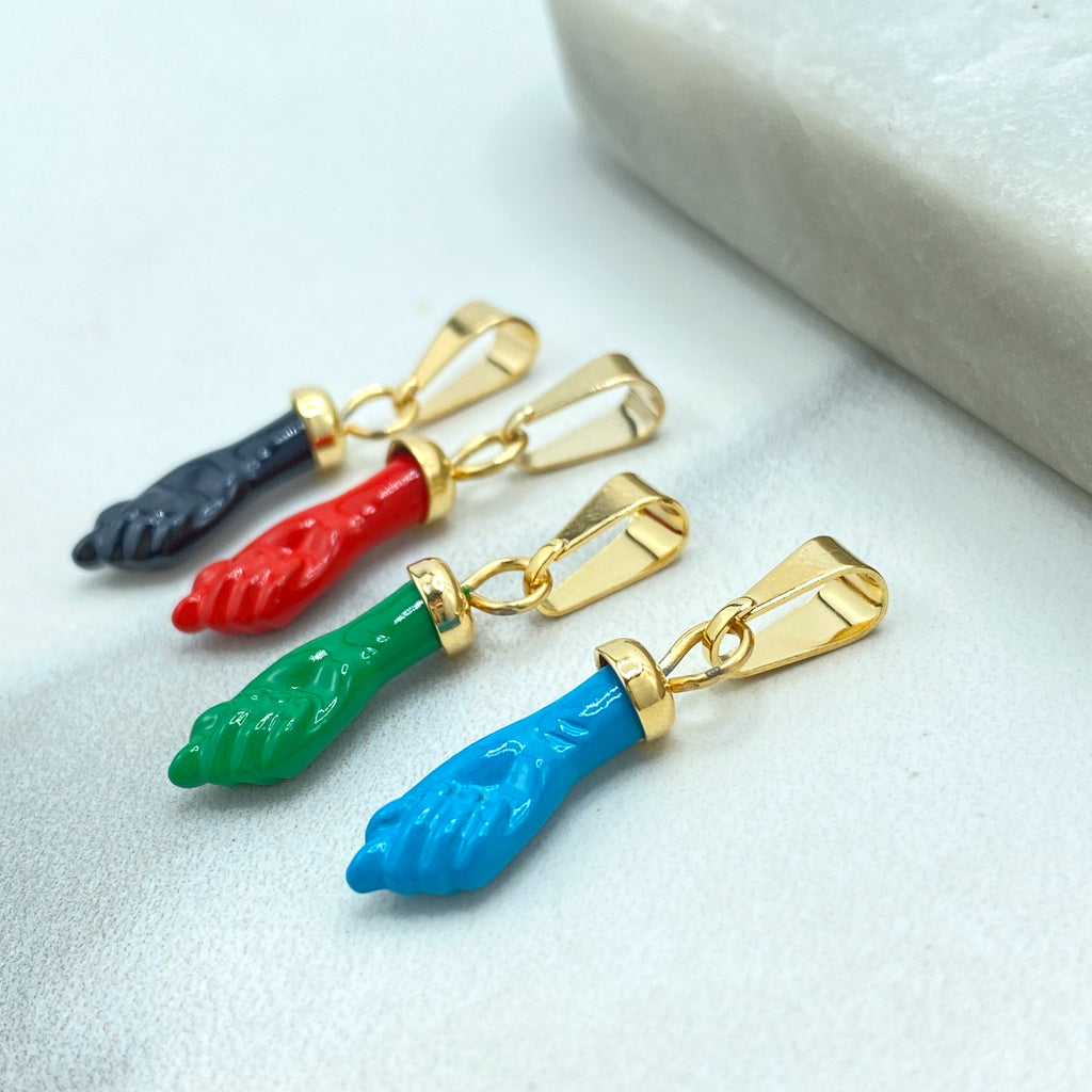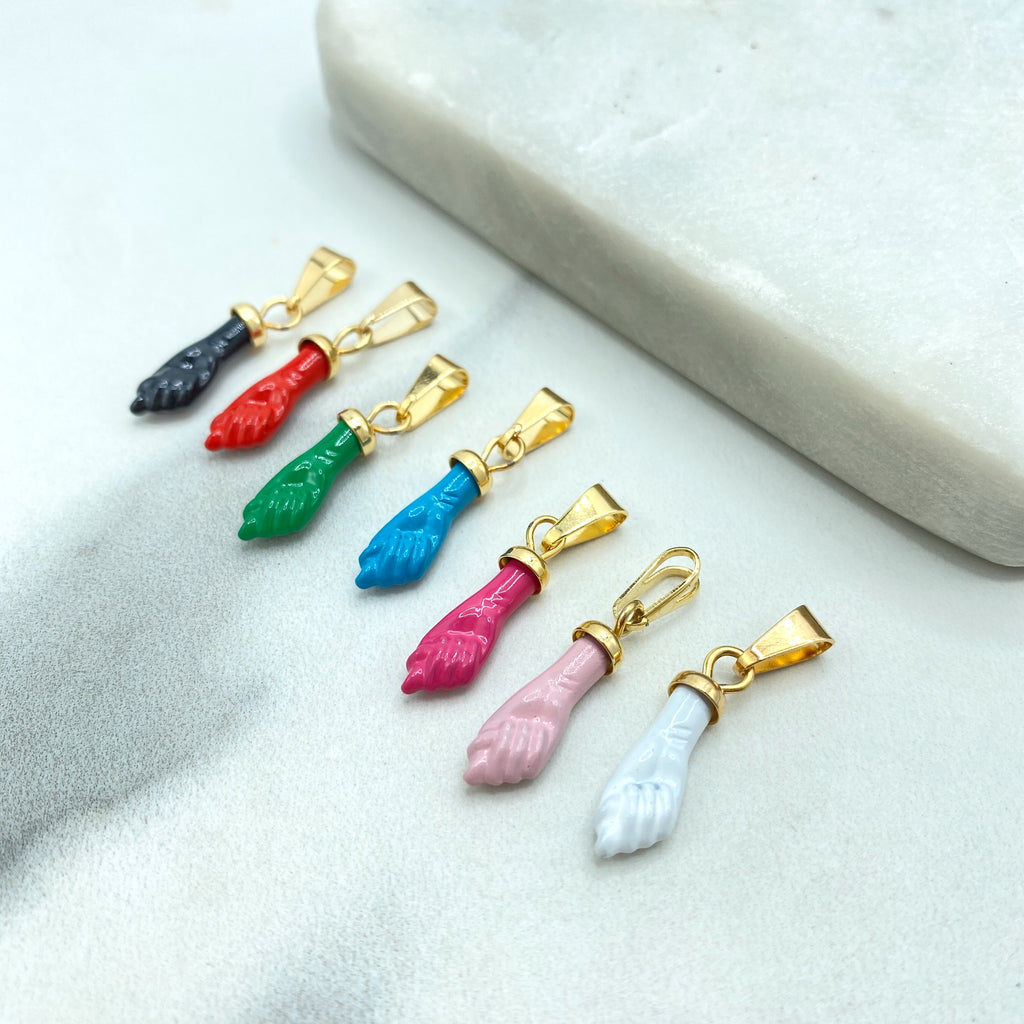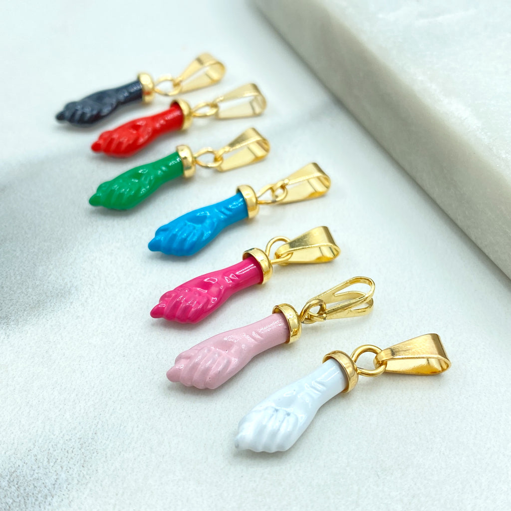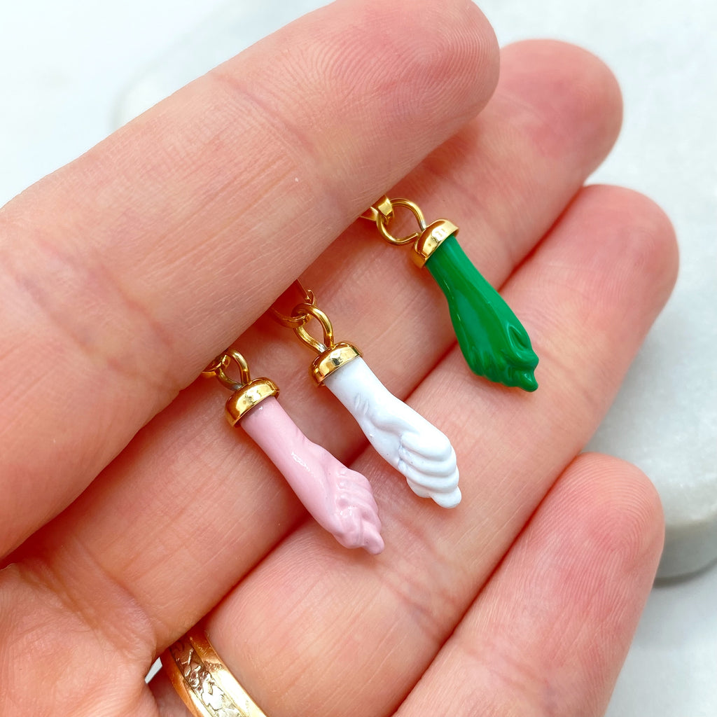 18k Gold Filled Colored Enamel Figa Hand Charms in White, Green, Sky Blue, Royal Blue, Pink, Red or Gray, Wholesale Jewelry Making