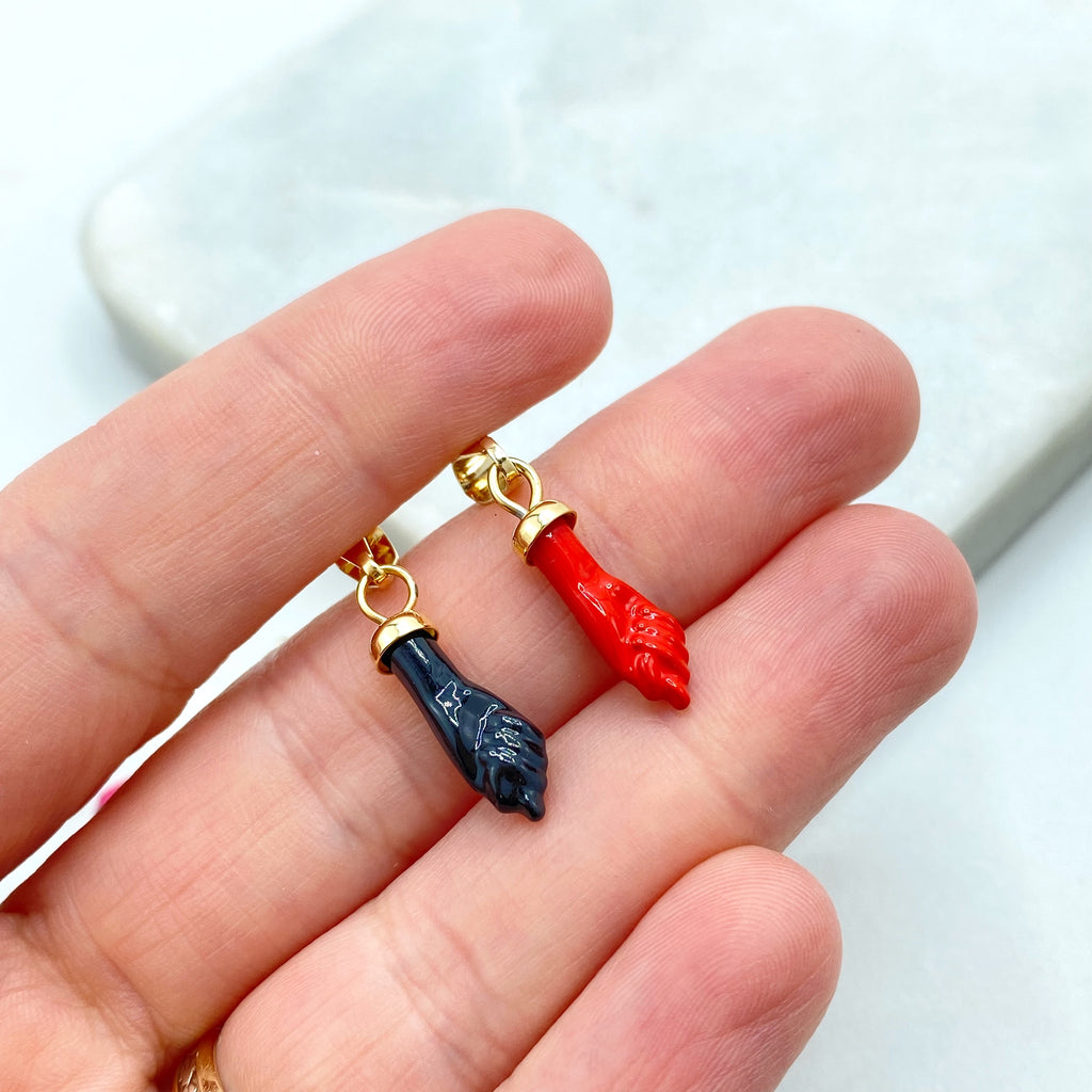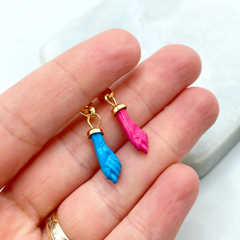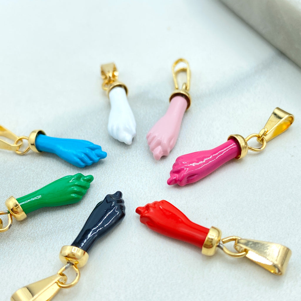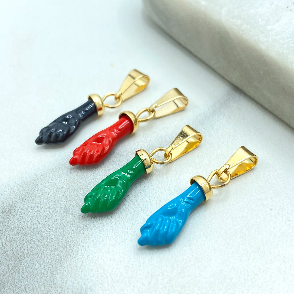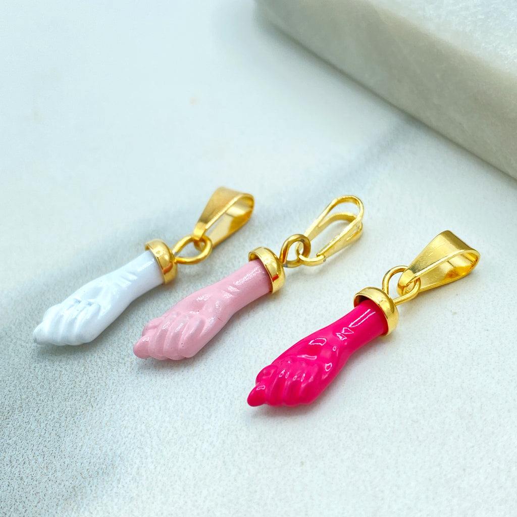 18k Gold Filled Colored Enamel Figa Hand Charms in White, Green, Sky Blue, Royal Blue, Pink, Red or Gray, Wholesale Jewelry Making