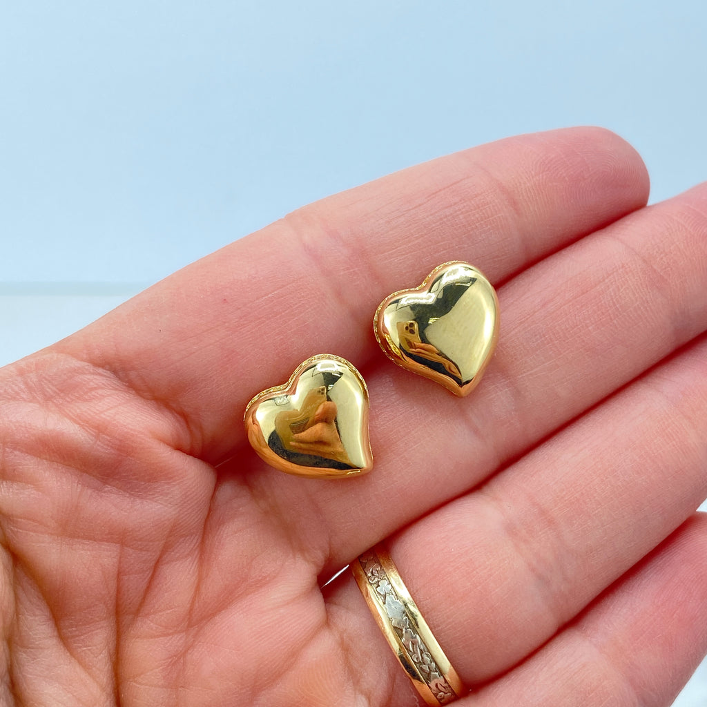 18k Gold Filled Polished Heart-Shaped Stud Earrings with a Micro Pave Cubic Zirconia Contour, Heart Earrings, Wholesale Jewelry.